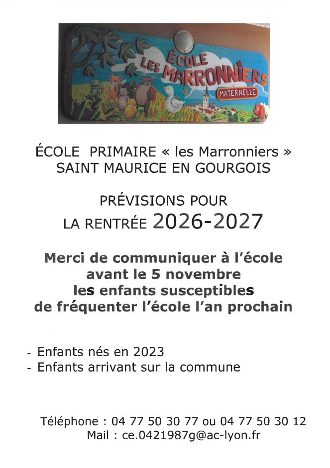ECOLE : Prévisions pour la rentrée 2026/2027