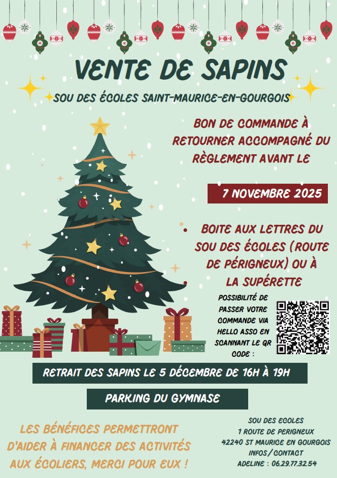 Le Sou des écoles organise leur traditionnelle “vente de Sapins”….